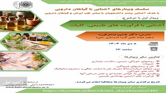 با مساعدت و همراهی گروه داروسازی سنتی، مقرر گردید به منظور بهره مندی دانشجویان، وبینار اول در تاریخ ۸ دی ماه ۱۴۰۴مجدد برگزار گردد.
