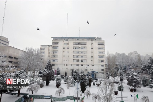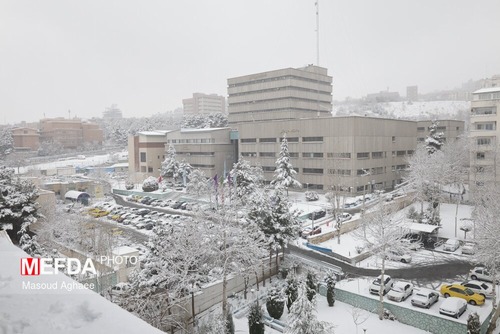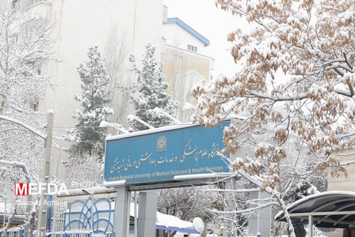 بارش برف که از ساعات اولیه بامداد شروع به باریدن کرد و در این حین فضای دانشگاه علوم پزشکی شهید بهشتی سفید پوش شد.