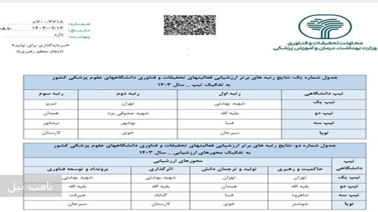 دانشگاه علوم پزشکی شهید بهشتی، در صدر رتبهبندی تحقیقات و فناوری کشور